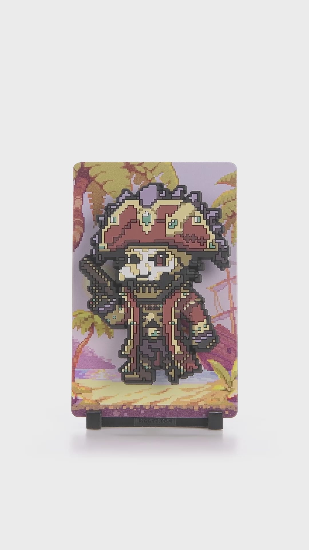 FiGGYZ are Pop Magnet Collectibles - pixel-art characters that snap magnetically onto display-ready backdrops. Each FiGGYZ features: A reversible metal display -Side A: Themed background related to the character -Side B: Classic Background, typically of the franchise A magnetised figure raised off the surface using MagMounts™ for a 3D pop out feeling Comes with a display base for shelves and a magnetic sticker for mounting on any vertical surface.
